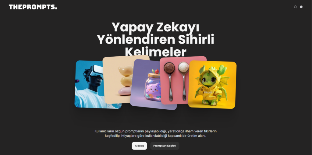 The Prompts, yapay zekayı en verimli şekilde kullanman için özenle hazırlanmış yaratıcı ve etkili prompt’lar sunar. İster içerik üret, ister tasarım oluştur, ister yeni bir proje geliştirmeye başla; her adımda doğru yönlendirmeyi alarak zamandan tasarruf eder ve daha güçlü sonuçlar elde edersin. Hayal gücünü tetikleyen, üretkenliğini artıran ve AI deneyimini bir üst seviyeye taşıyan kapsamlı bir prompt kütüphanesi burada seni bekliyor.